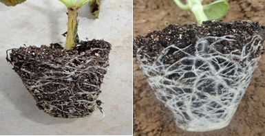 种植户自己育苗由于育苗设备的不完善,导致育苗盘温度无法达到适宜根系生长的范围(20~25℃),导致根系数量少、生长缓慢。