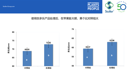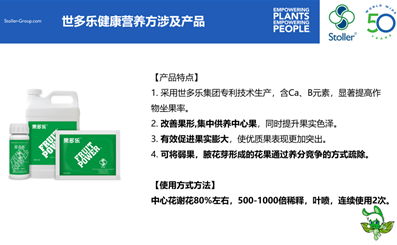 在使用世多乐方案后,果个膨大明显优于对照,成花、春梢和叶片质量提高明显,花芽分化质量好,强壮根系,解决小叶,培养健壮春梢,同时减少人工劳动量,特别是在使用果多乐后,减少了疏果的工作量。世多乐方案避免果树大小年的发生,实现持续稳产,让果农种植更轻松!